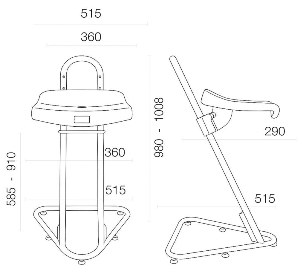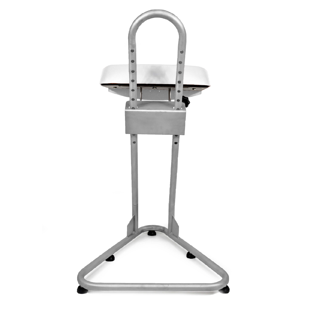 A postura semi sentada reduz a sobrecarga nos membros inferiores e na região lombar. Dessa maneira, o operador alterna apoio e mobilidade com mais conforto ao longo do turno.