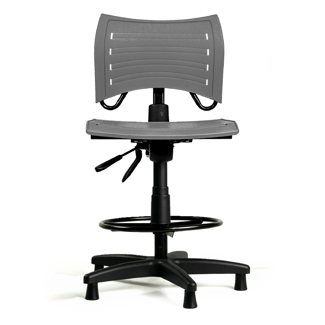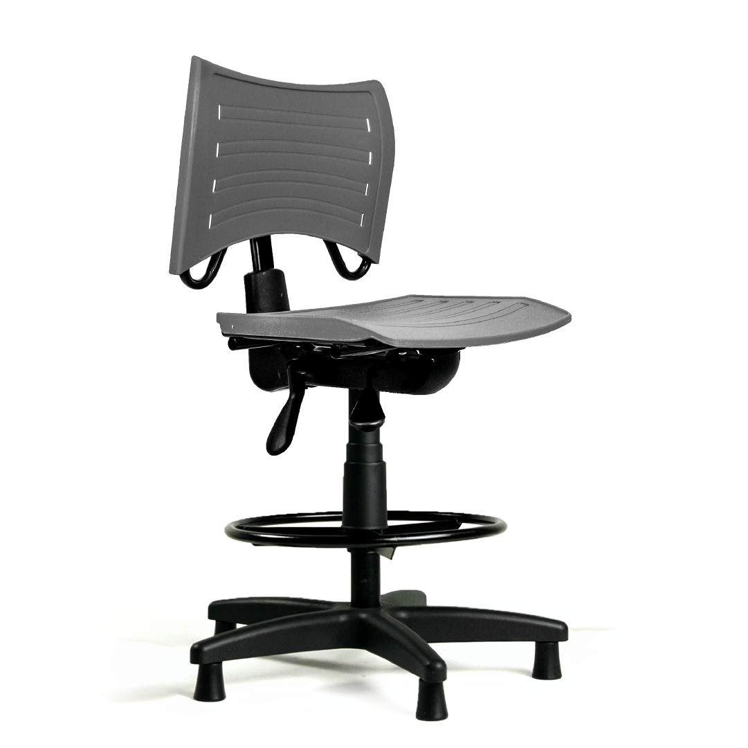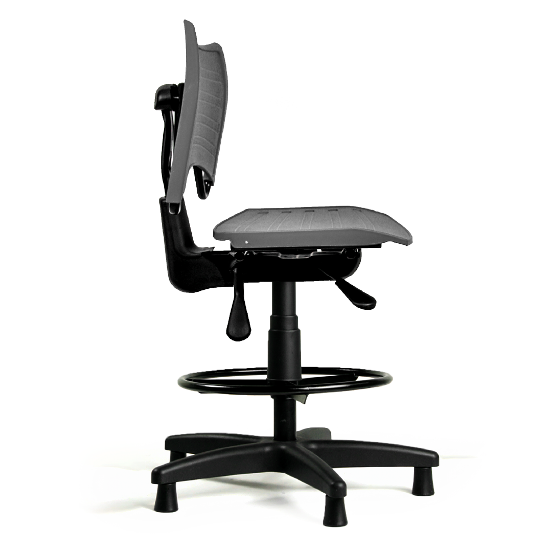 A Cadeira Ergonômica Industrial Clean PP conta com regulagem de altura por pistão a gás, permitindo adaptação rápida para diferentes operadores — essencial em turnos rotativos e postos com alternância de colaboradores.