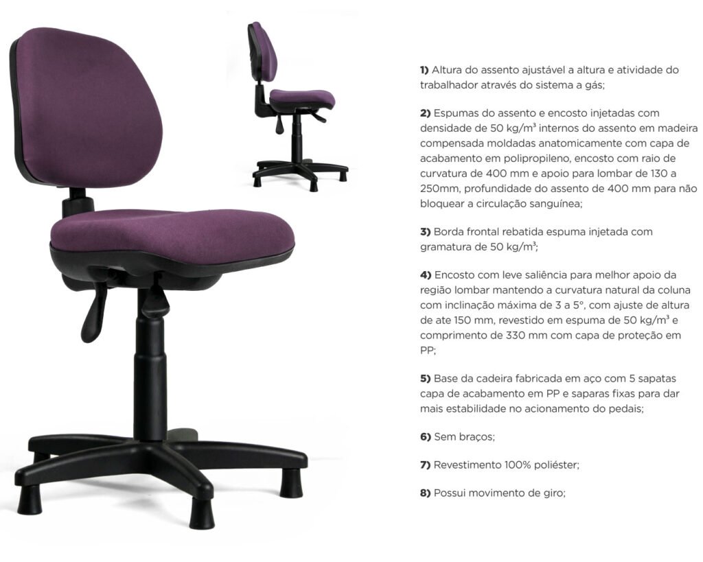 Assim, a cadeira se torna ideal para confecções, ateliês, indústrias têxteis e ambientes profissionais que exigem ergonomia aplicada, resistência e eficiência operacional.