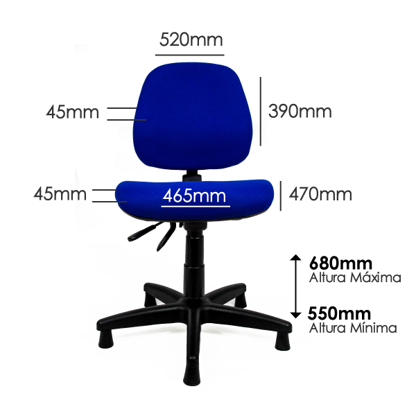 Assento: espuma de poliuretano injetada, alta resiliência
