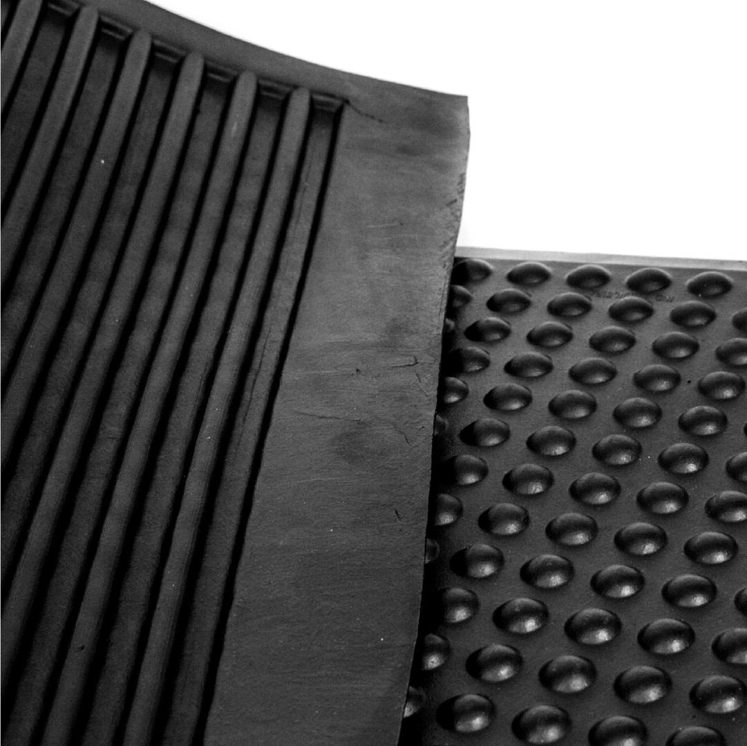 Fabricado em borracha natural e SBR negro de fumo, plastificantes, aceleradores e agentes de proteção. Superfície com semiesferas para redução de tensão muscular e base com canaletas para maior aderência.